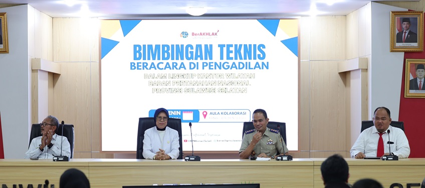 Makassar – Kantor Wilayah Badan Pertanahan Nasional Provinsi Sulawesi Selatan menyelenggarakan kegiatan Bimbingan Teknis Beracara di Pengadilan dalam Lingkup Kantor Wilayah BPN Provinsi Sulawesi Selatan Tahun Anggaran 2026, pada Senin (9/3/2026), bertempat di Aula Kolaborasi Kantor Wilayah BPN Provinsi Sulawesi Selatan.